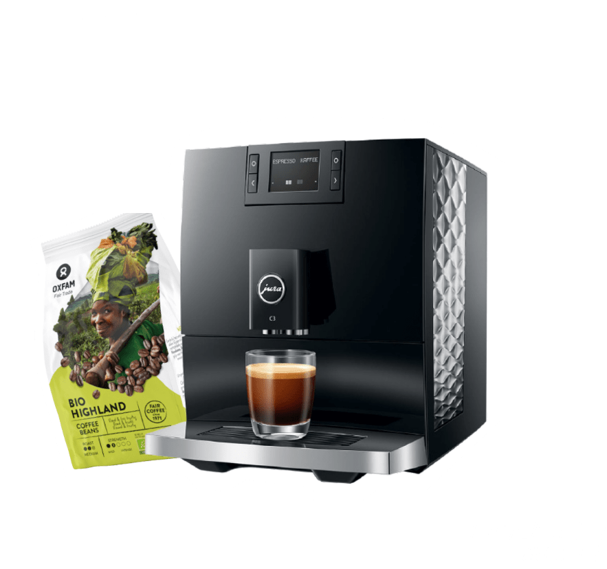 Goeie koffie, voor jou, de producenten en de planeet, daar doen we het voor. Dankzij een topkoffiemachine zoals de JURA C3, zit je gebeiteld voor een kopje kwaliteitskoffie! Met 1 druk op de knop, versgemalen. Het stijlvolle design en gebruiksgemak maken het verschil. Samen met ... een pakje Oxfam-koffieboontjes, natuurlijk. Die krijg je er bovenop.