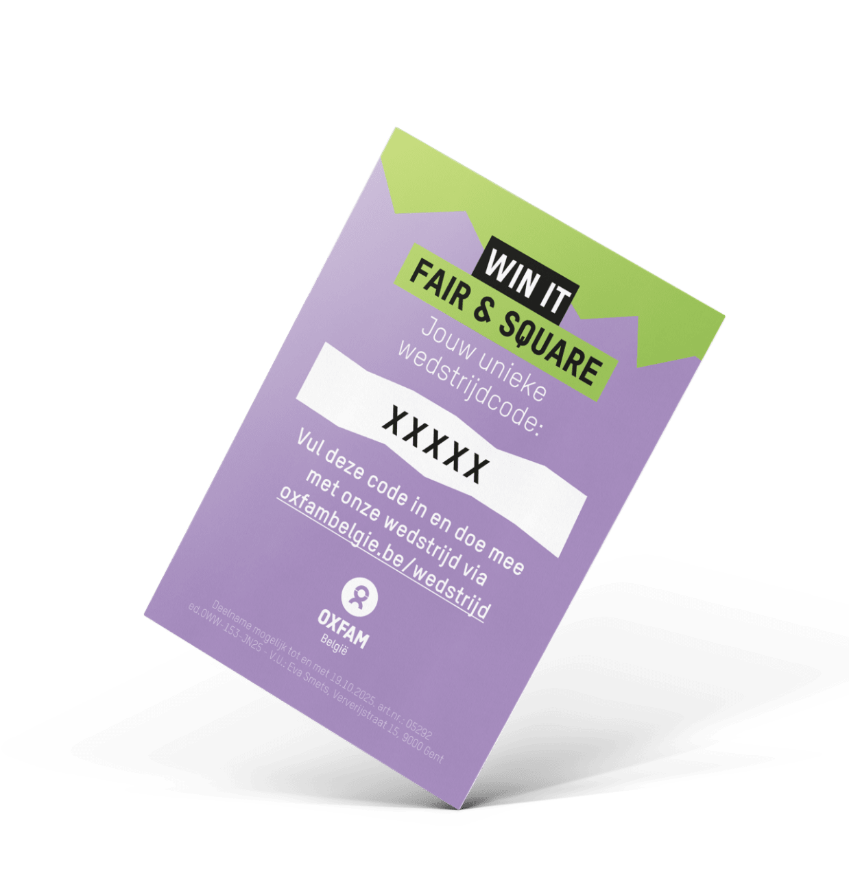 Tijdens de Week van de Fair Trade (1 tot 11 oktober 2025) maak je bij je bezoek aan een Oxfam-Wereldwinkel kans op mooie prijzen. Bij elke aankoop in de wereldwinkel, krijg je een wedstrijdlotje. Vul de unieke code die er op staat hieronder in om deel te nemen. Deelname was mogelijk tot en met 19 oktober 2025.